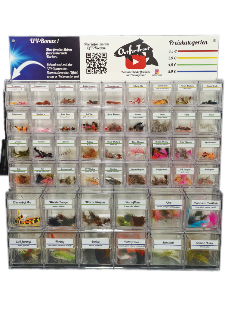 Wir bieten durchdachte und ansprechende Präsentationsmöglichkeiten unserer OfT-Fliegen zu besten Konditionen. Schnelle zuverlässige Lieferung und Nachbestellung garantiert.