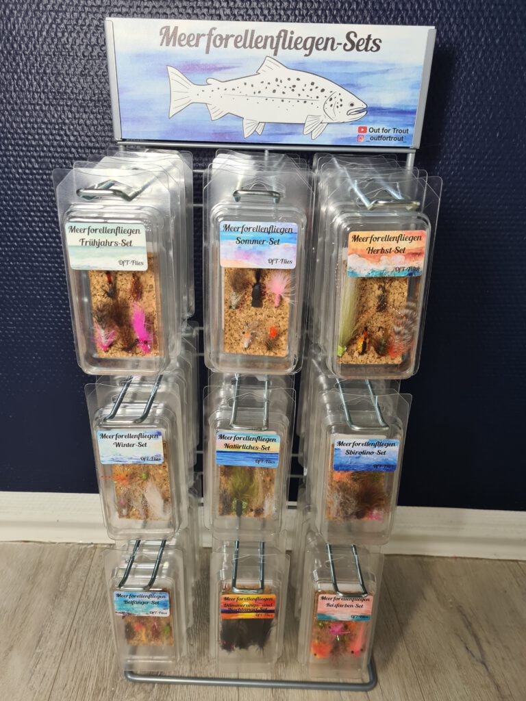 Unser praktischer Fliegenset-Aufsteller ist die kompakte Lösung, um unsere beliebten Fliegensets ansprechend und überschaubar anzubieten.