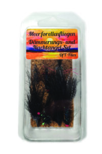 Meerforellen Dämmerungs- und Nachtangel-Set Das Set eignet sich perfekt zum Angeln in den Dämmerungsphasen und der Nacht. Folgende Fliegen sind im Set enthalten: • Pattegrisen, schwarz• Gurgler• Kobberbassen, dunkel• Mulkkis Shrimp, schwarz• Woolly Bugger, schwarz• Brenda, schwarz• Wurmfliege, schwarz Eine Übersicht aller OfT-Fliegen mit Angaben zu Design und Einsatz können in unserem umfangreichen PDFOfT-Flies Produktinformation nachgelesen werden.
